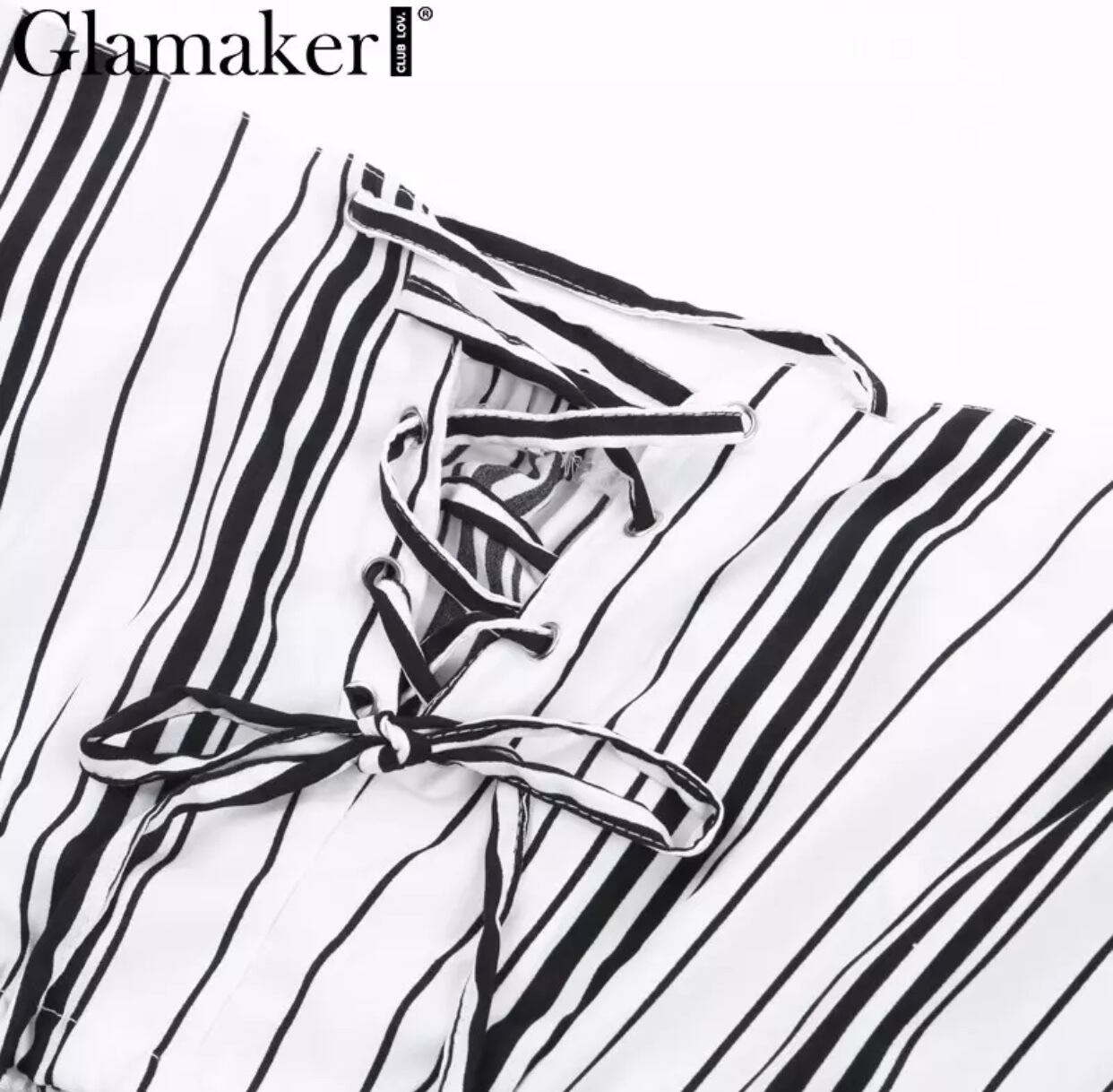 ストライプショート丈パフスリーブにワイドパンツの上下セットアップ♪