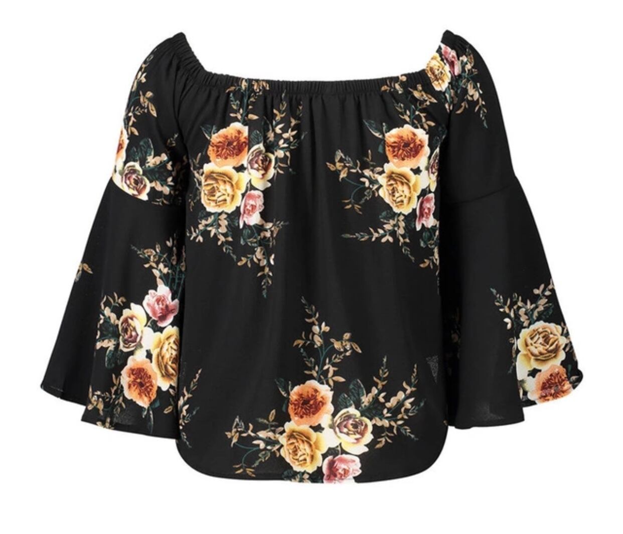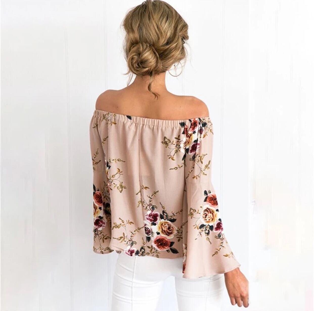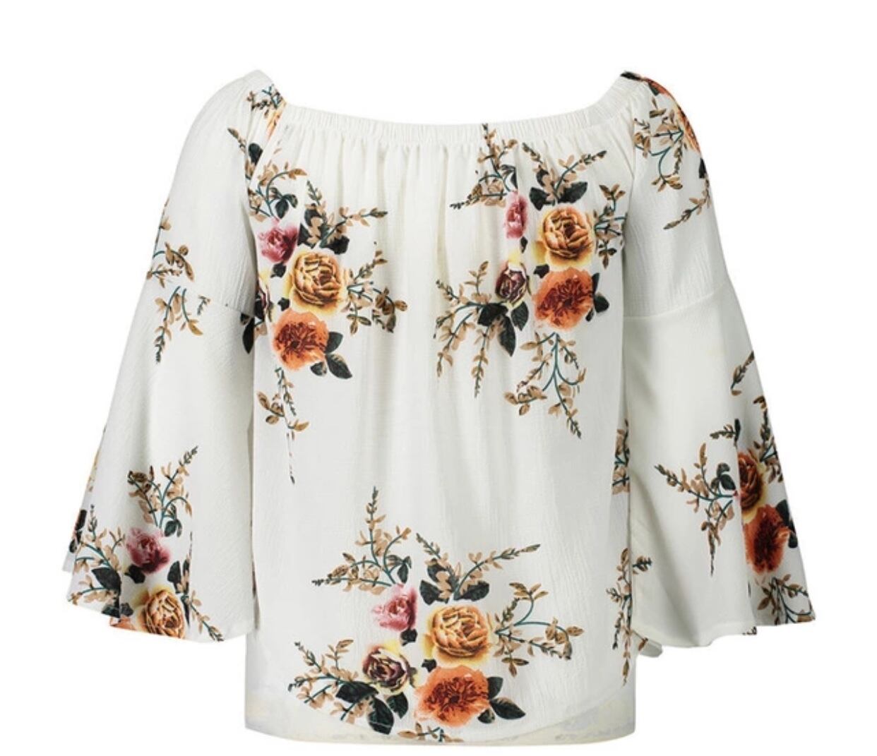 サイズとカラーが豊富な花柄オフショルダートップス♪