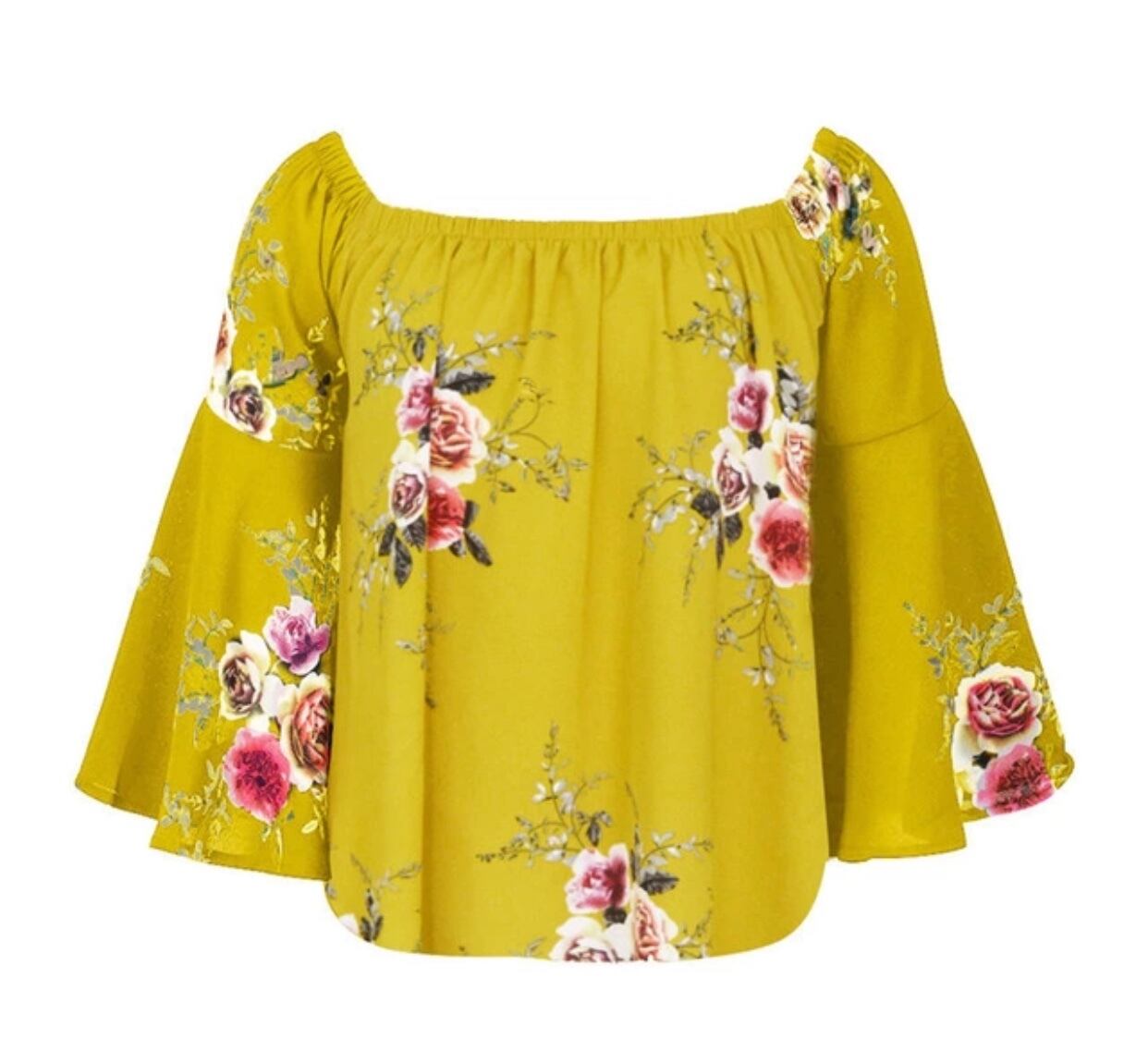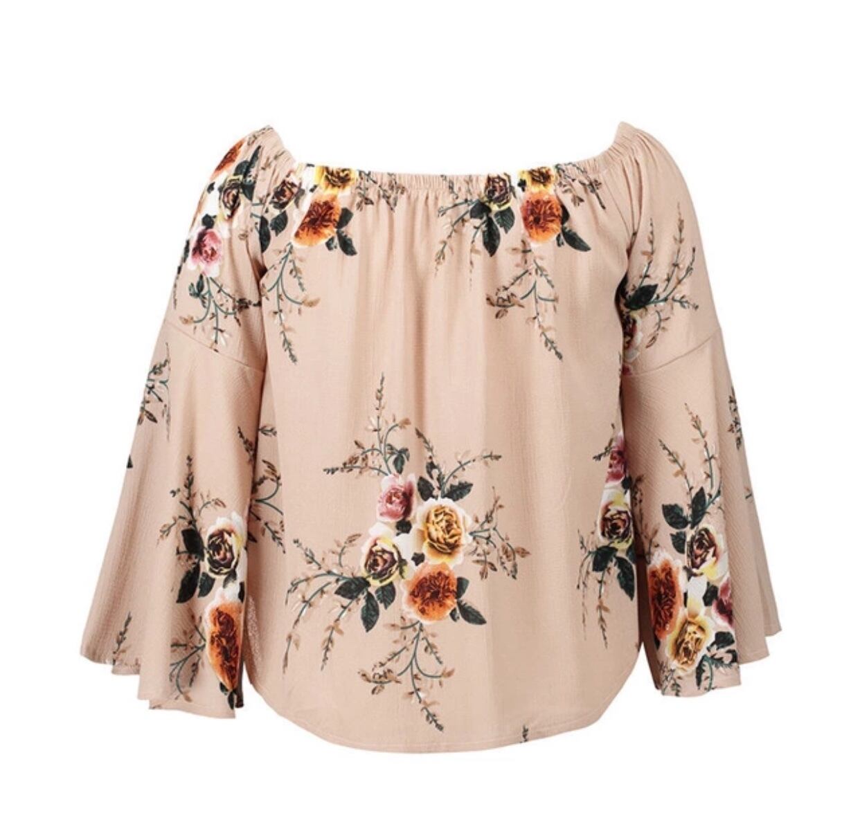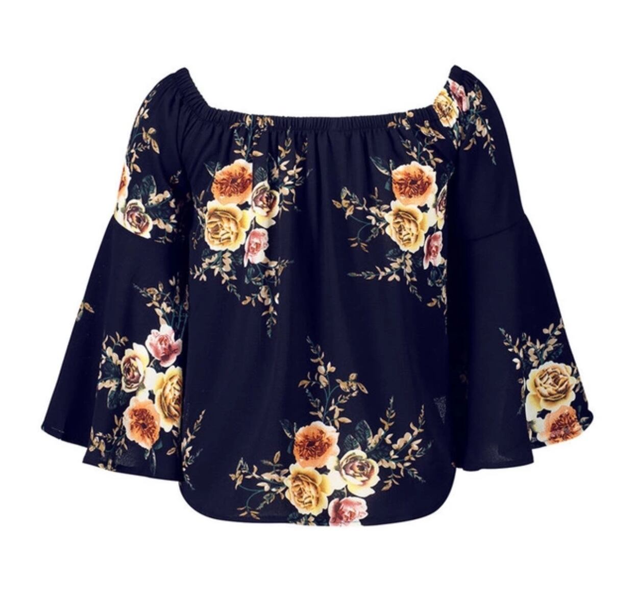 サイズとカラーが豊富な花柄オフショルダートップス♪