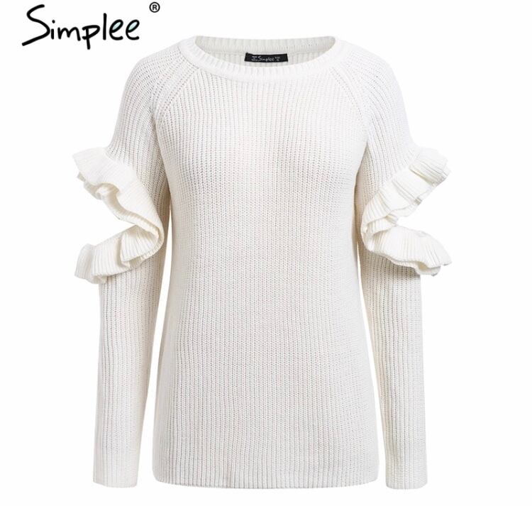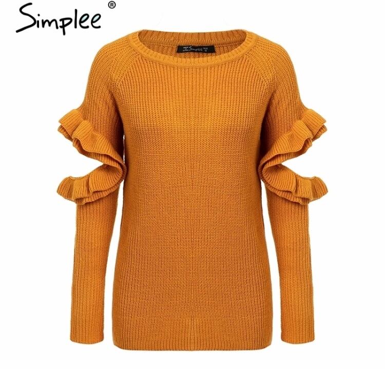 肘部分の空き具合とフリルがとっても可愛いいリブニット♡