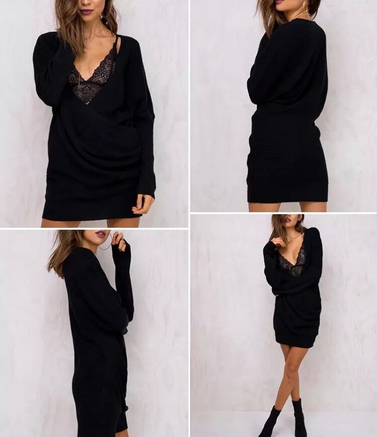 可愛いらしくもsexyにも着こなせるVネックルーズニットワンピース♪