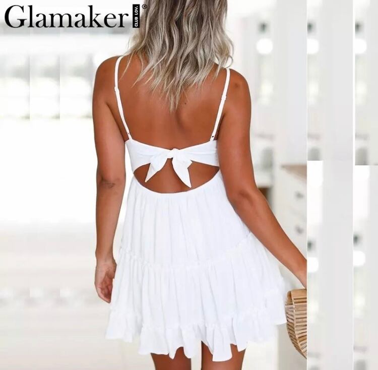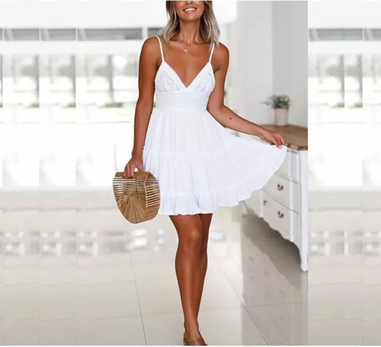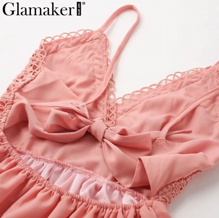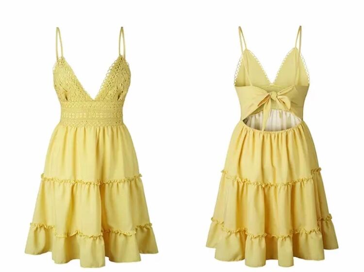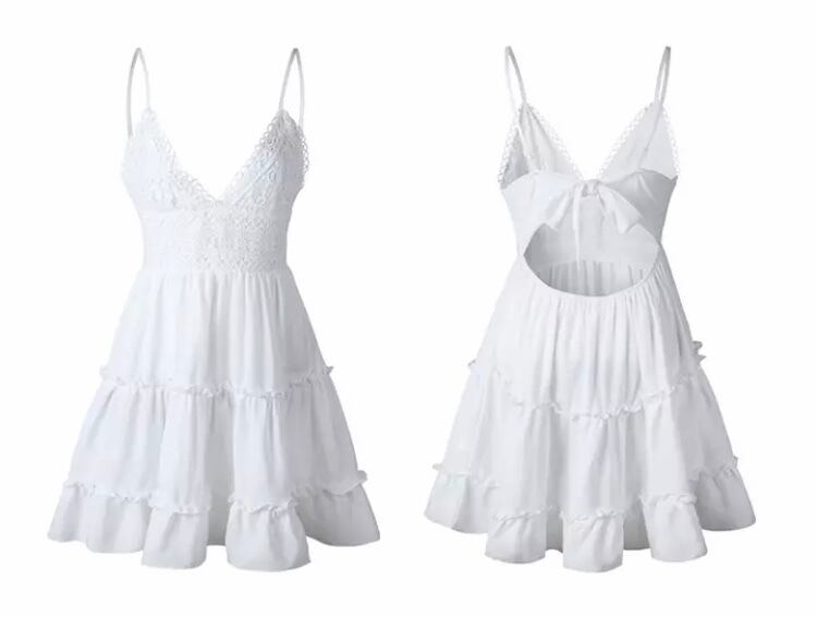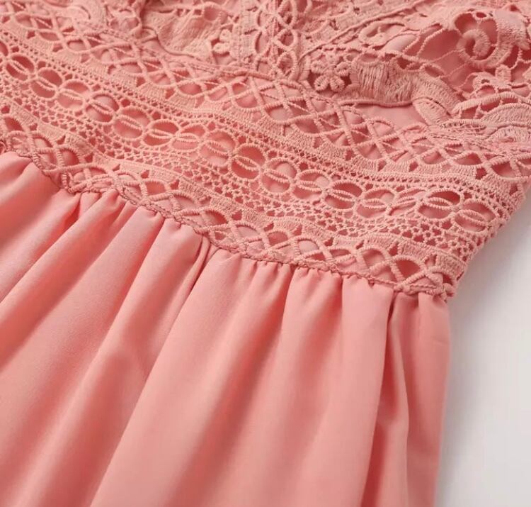 女性らしい鍵編みにバックのリボンがポイントのキャミワンピ♪