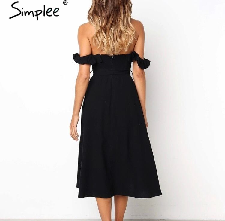オフショルダー部分のフリルとウエストのリボンがとっても可愛いらしい1枚♪