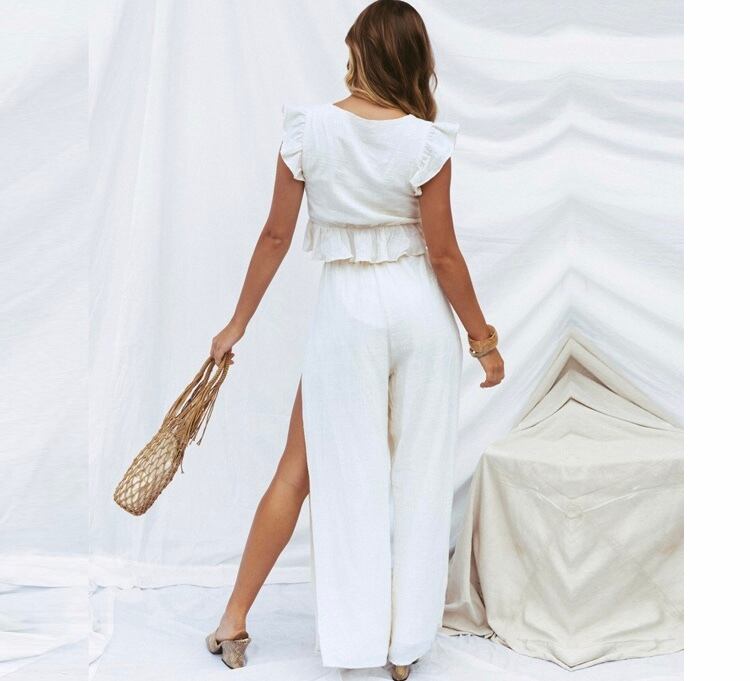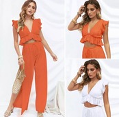 肌触りの良い素材にフリルトップスとワイドパンツのセットアップ♪