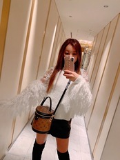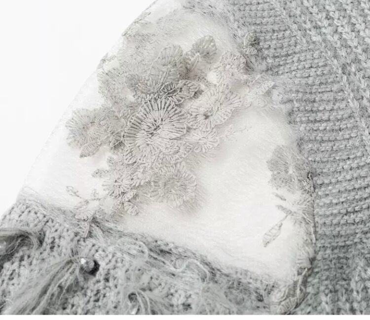 肩部分はレース素材袖元にはビジュー付きのふわふわシャギーがアクセント♪