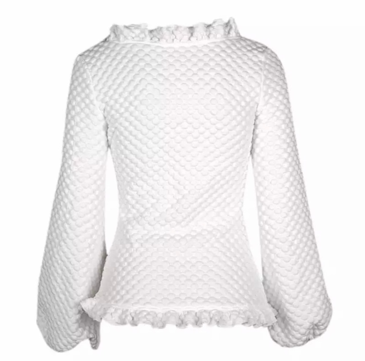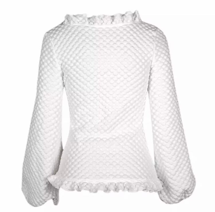 胸元と裾のフリルが可愛いらしく袖元はボリューム感たっぷりで女の子らしい1枚♡